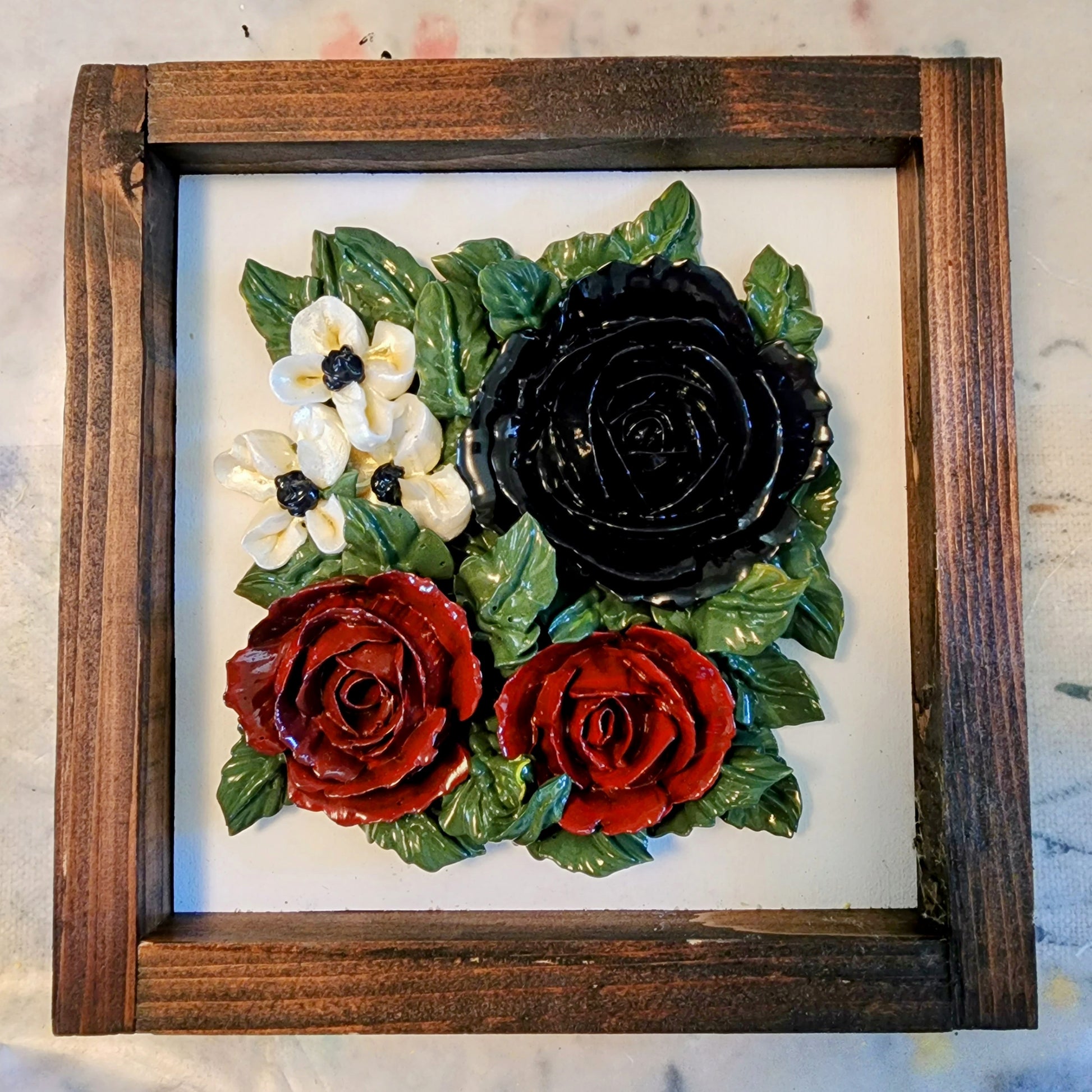 This beautiful bouquet looks stunningly realistic, and is crafted completely out of paint! Each petal, leaf, stamen…is handmade, making every aspect of the piece one-a-kind and organic, just like a live flower. Hang this “low maintenance” floral arrangement in your home and watch the room immediately light up!